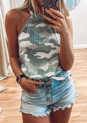 Claire Halter Neck Top Camo
