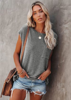 Cut Out Crew Neck Classic T Shirt ORANGE