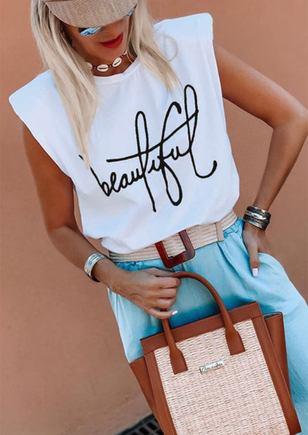 Amp up your look with our BEAUTIFUL PADDED SHOULDER WHITE T! Featuring a white fabric with a shoulder pad design, we are obsessed with the eye-catching lettering on front. Team this with mom jeans and sneakers to complete.